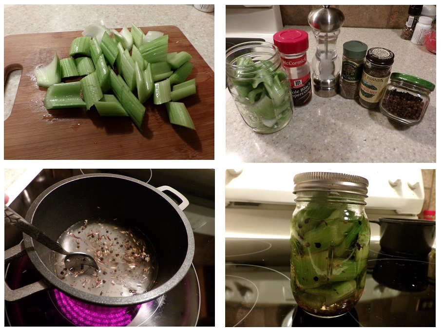Note: The only difference between pickled celery and celery relish in this recipe is how you cut up the celery.