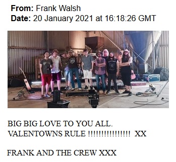 He also sent along this little note on January 18th, 2021: __________________________________________________________ " HI there you wonderful VALENTOWN folk, as the song Valentown hits the airwaves its all exciting in the camp