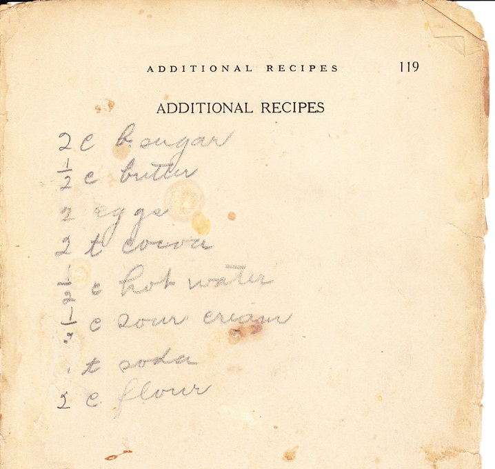 I think she had a sweet tooth like me because the baking section of the cookbook was very heavily used! There are plenty of fingerprint smudges, stains, tears, and missing corners.
