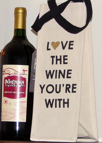 2) A 1.5L bottle of Bohemian Highway's Cabernet Sauvignon from Nouveau Wine. And wine bag to carry it in! (Yes, we got our NY Liquor Authority Event Permit, it took a while and was a major hassle, but we got it!)