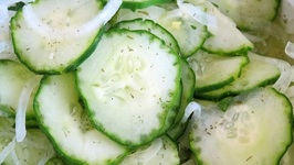 INSTRUCTIONS Prepare the salad: 1) Slice the ends off the cucumbers, and score* them. 2) Slice the scored cucumbers thinly (no more than 1/4" thick) 3) Thinly slice the onions 4) In a glass bowl, mix the sliced cukes and onions with approx. 1/4 tsp salt per cucumber until slices are coated. Let sit a room temp 2-3 hours. Prepare the dressing: Using approx. 1 tbsp. milk to 1/4 tsp. vinegar, mix the milk and vinegar together, stirring until slightly thickened and coagulated. Chill 30 -60 minutes.